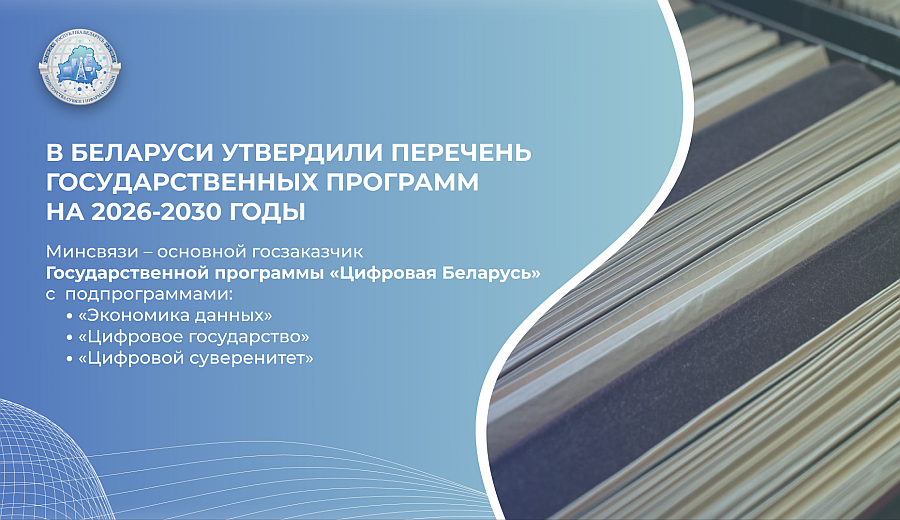 Минсвязи является основным госзаказчиком  Государственной программы ”Цифровая Беларусь“ с  подпрограммами ”Экономика данных“, ”Цифровое государство“ и  ”Цифровой суверенитет“.