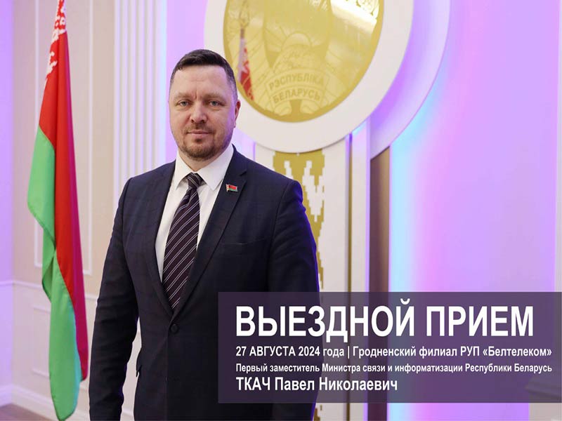 27 августа 2024 года с 12.00 до 13.00 в Гродненском филиале РУП «Белтелеком» первый заместитель Министра связи и информатизации Республики Беларусь Ткач Павел Николаевич проведет прием граждан и юридических лиц с одновременным подключением «прямой телефонной линии» по телефону: 8 (0152) 41-20-40. Жители смогут задать вопросы, затрагивающие деятельность в области связи (как почтовой, так и электросвязи) и цифрового развития. Предварительная запись осуществляется по телефону: 8 (0152) 41-21-30. Место проведения приема: Гродненский филиал РУП «Белтелеком» г. Гродно, ул. Максима Горького, 87, 3-ий этаж, кабинет директора филиала. Изображение PDF