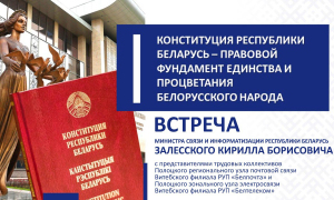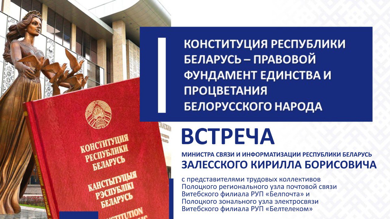 Тема: «Конституция Республики Беларусь – правовой фундамент единства и процветания белорусского народа» Направления диалога: история подготовки и принятия Конституции Республики Беларусь; референдумы в Беларуси: вехи конституционного развития; Всебелорусское народное собрание как высший представительный орган народовластия. Министр связи и информатизации Кирилл Залесский 31 марта посетит Витебскую область.Глава Минсвязи встретится с представителями Полоцкого регионального участка почтовой связи Витебского филиала РУП «Белпочта» и Полоцкого зонального узла электросвязи Витебского филиала РУП «Белтелеком». Изображение PDF
