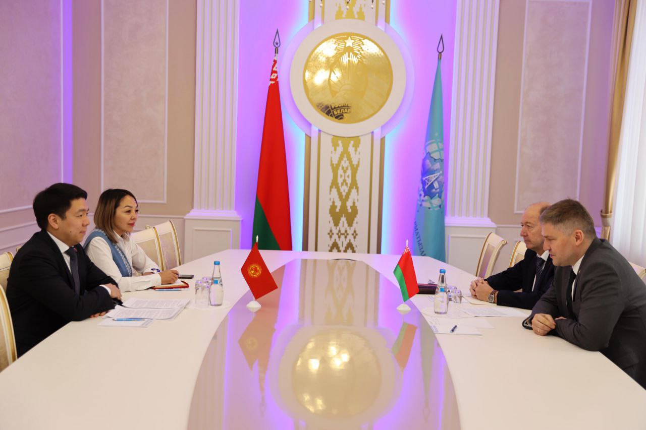 25 февраля 2026 г. в Министерстве связи и информатизации состоялась встреча Министра связи и информатизации Республики Беларусь Кирилла Залесского с Чрезвычайным и Полномочным Послом Кыргызской Республики в Республике Беларусь Эрболом Султанбаевым.