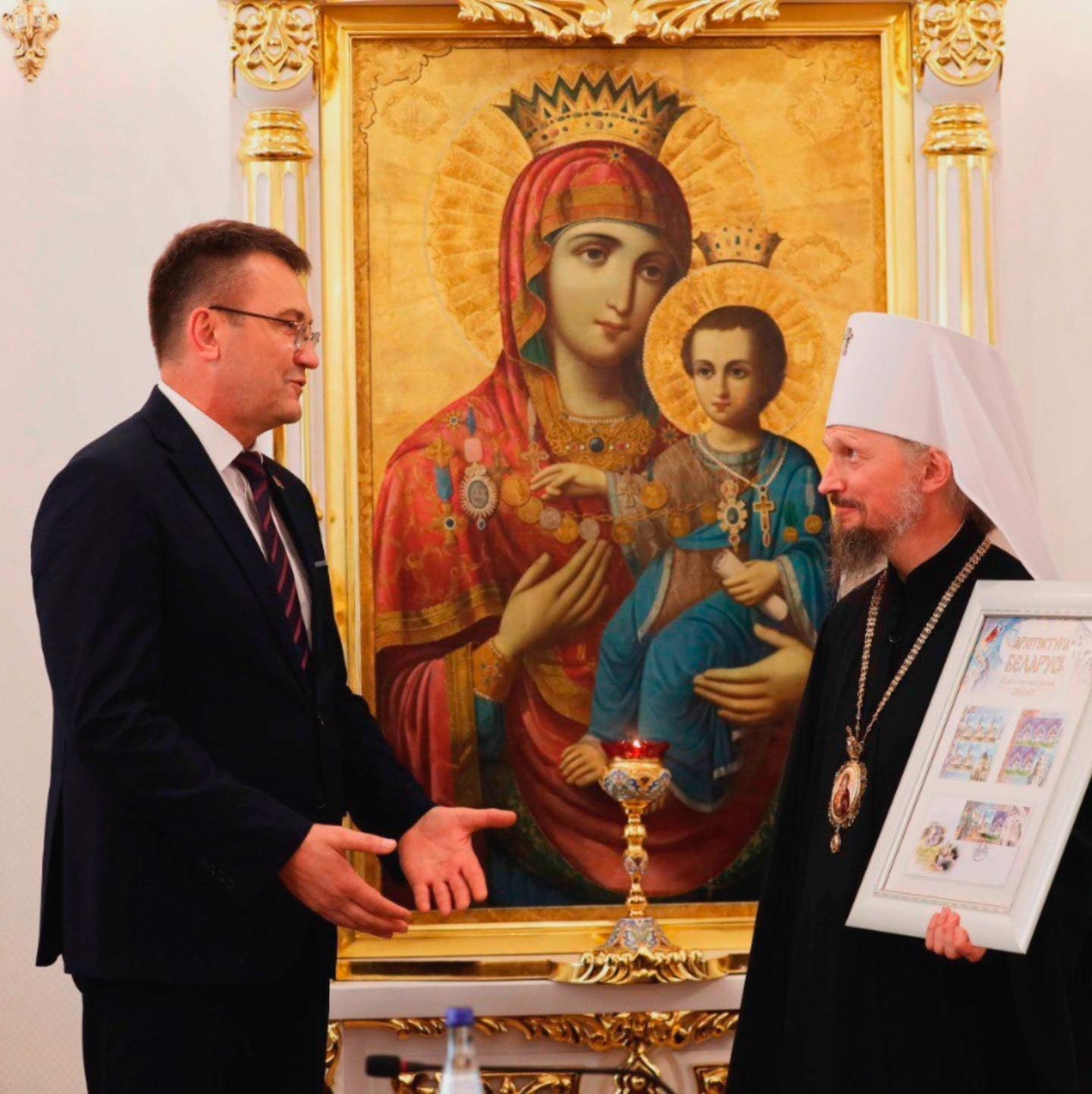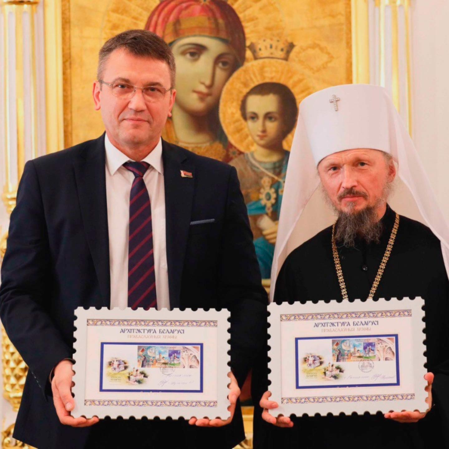 19 сентября в Минском епархиальном управлении состоялась церемония официального гашения почтового проекта «Архитектура Беларуси. Православные храмы». В церемонии торжественного гашения приняли участие:Митрополит Минский и Заславский Вениамин, Патриарший Экзарх всея Беларуси,Министр связи и информатизации Республики Беларусь Константин Шульган. С 1992 года Министерством связи и информатизации Республики Беларусь и РУП «Белпочта» совместно с Белорусской Православной Церковью подготовлено к выпуску большое количество почтовых проектов христианской тематики. На протяжении уже более 30 лет на почтовой продукции отображались храмы, колокола, иконы. Выпуски посвящались святым, прославленным на Белорусской земле. На данный момент введено в обращение почти 1600 художественных миниатюр, и 100 из них – посвящены Православию. Сегодня состоялась презентация красочного, информативный и в то же время очень душевного проекта, который демонстрирует два красивейших храма Беларуси: Свято-Петро-Павловский кафедральный собор в Гомеле и Церковь Рождества Пресвятой Богородицы в д. Мурованка Гродненской области, где также состоялись мероприятия по гашению художественных марок. Мы надеемся, что введенный в почтовое обращение 100-й марочный проект, посвященный Православию, послужит продолжению доброго соработничества Белорусского Экзархата с Министерством связи и информатизации Республики Беларусь и белорусской почты и в будущем появятся новые значимые почтовые проекты, отражающие важные события духовной жизни белорусского общества, свидетельствующая об исторической роли Православия на Беларуси. Отметим, что сегодня издательский центр "Марка" РУП "Белпочта" был удостоен Грамотой Патриаршего Экзарха в благословении за труды во славу Белорусской Православной Церкви. Изображение Изображение Изображение PDF